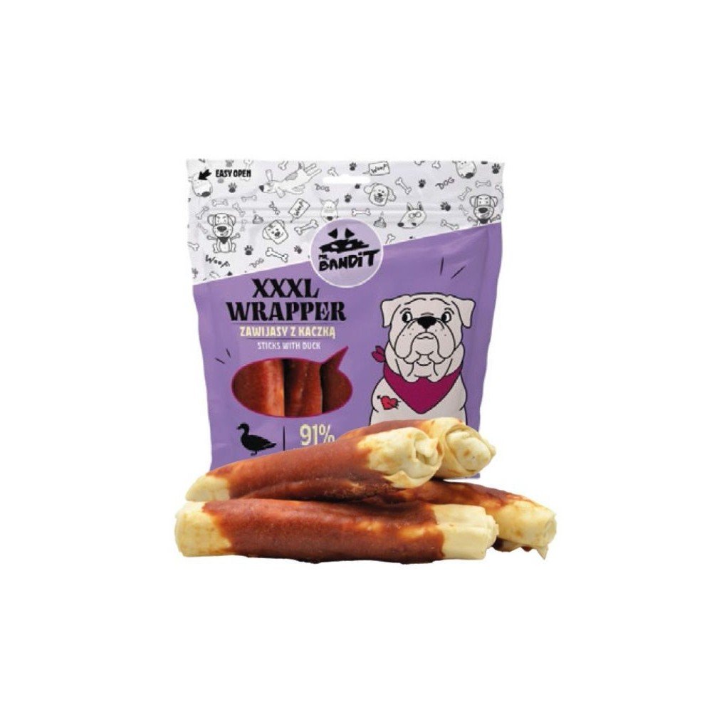 Kramtukas apvyniotas anties mėsa. Tinkamo kietumo ir dydžio užkandis garantuoja valandų valandas gardžios pramogos!