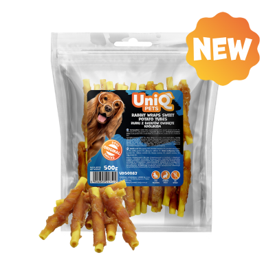 Palepinkite savo jautrų šuniuką šiais triušio ir saldžiųjų bulvių tūbelėmis – švelniu, maistingu kramtomuoju gabalėliu, kuriame derinamas naujų baltymų turintis triušis ir lengvai virškinamos saldžiosios bulvės, įkomponuotos į linksmą, tuščiavidurį dizainą. Puikiai tinka šunims, kuriems reikia lengvai kramtyti ir pilvui draugiškų skaidulų!